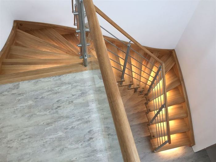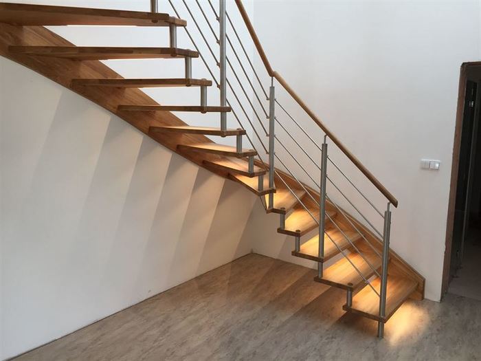 Úvod > Aktuality > Schodiště do „U“ s osvětlením a nerez zábradlím