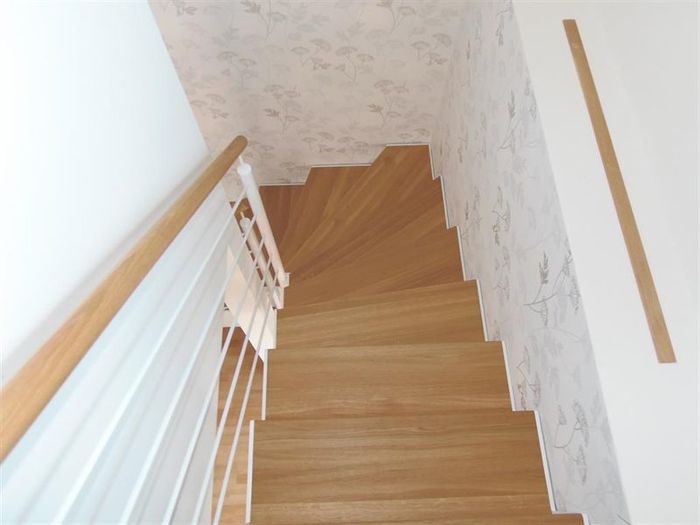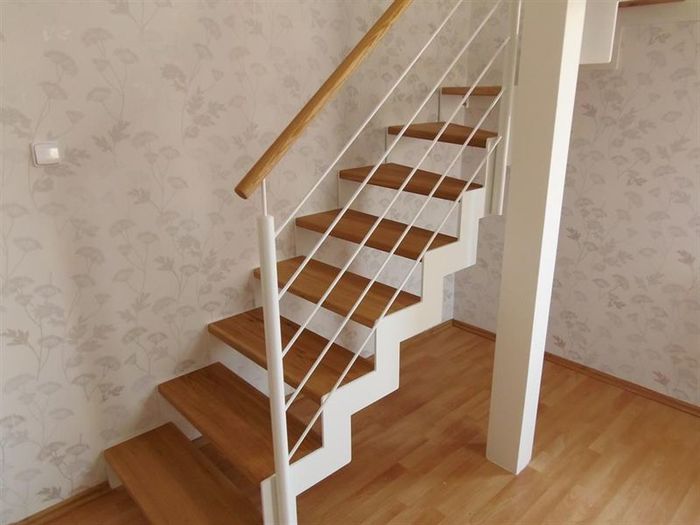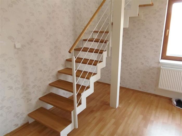 Schody jsou samonosné ve tvaru písmene „L“.