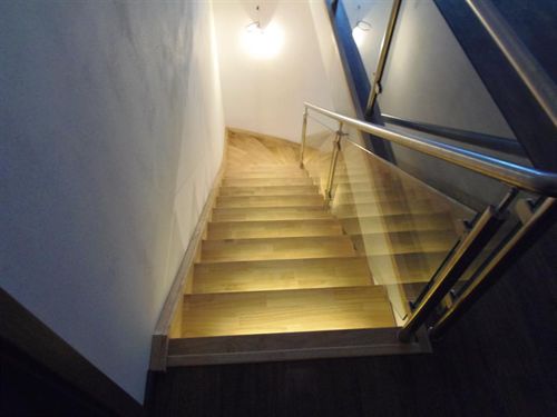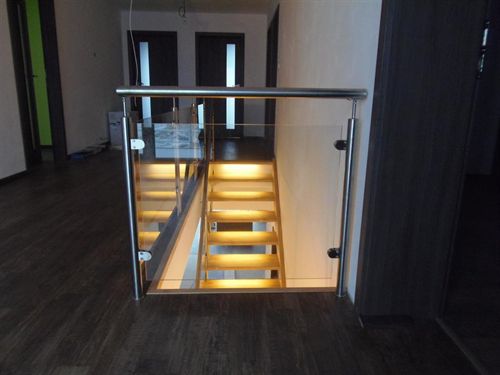 V dubnu jsme pro zákazníka z okolí Jihlavy namontovali schodiště do novostavby rodiného domu s osvětlením, nerezovým zábradlím a sklem. Materiál na schody je použit exotická dřevina Hevea.