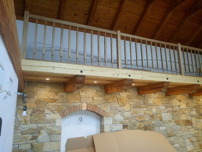 Namontované schodiště i zábradlí je vyrobeno ze dřeva dubu průběžného s povrchovou úpravou olejováním.