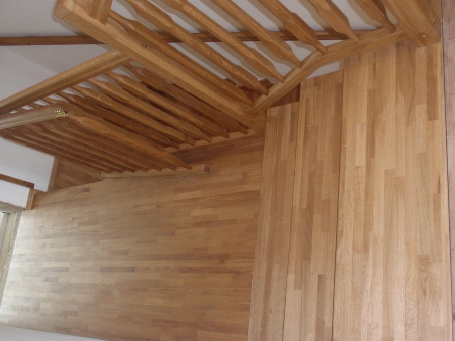 V rodinném domě ve Velkém Meziříčí jsme namontovali dřevěné obložení atypického schodiště /Obkladové schodiště /, které je v horní částí osazené bezpečnostní brankou a za dlouhou galerii je hlavní část schodiště ve tvaru „L“ doplněno o 3 samostatné schody, které jsou také obložené dřevem.