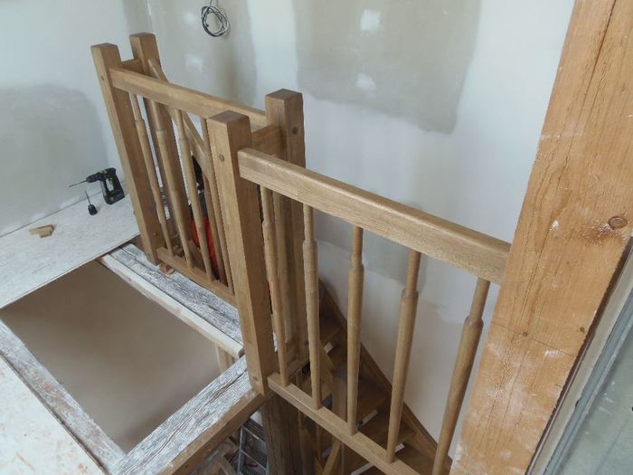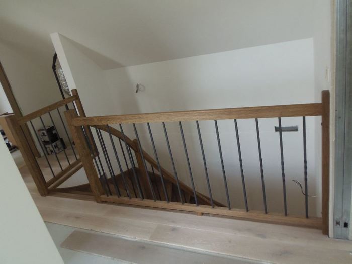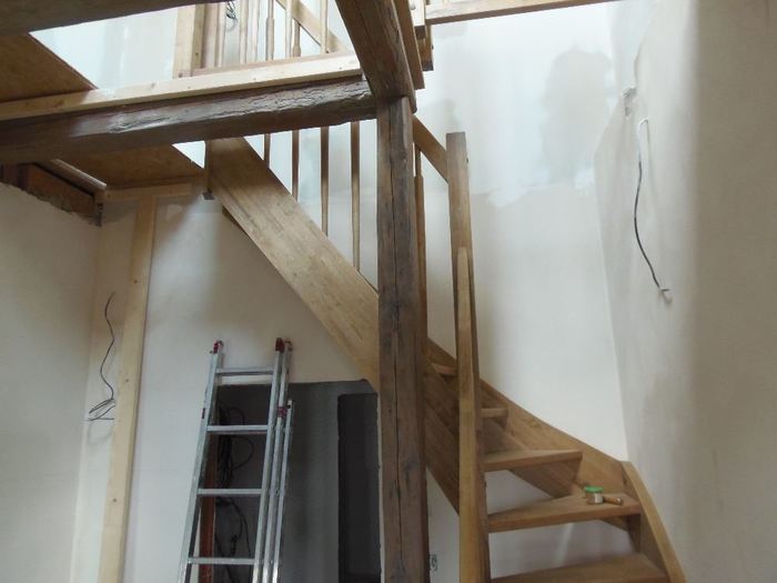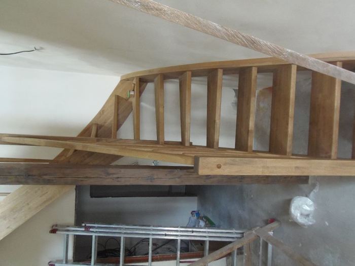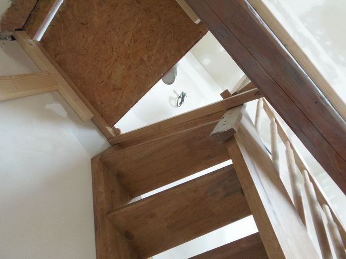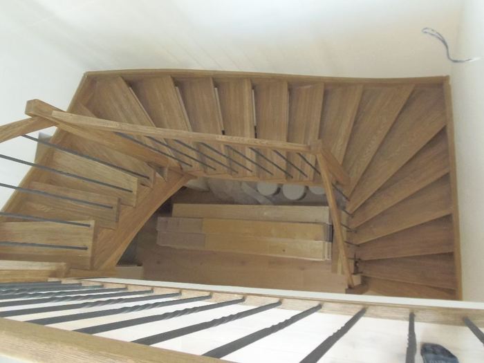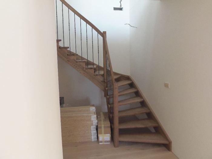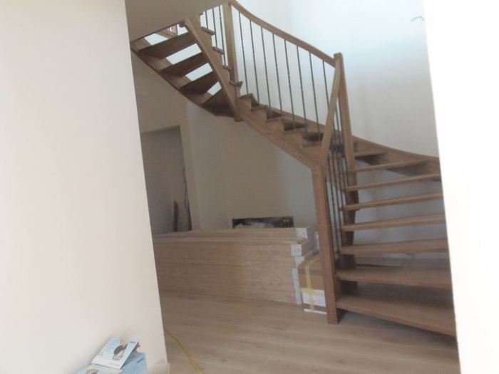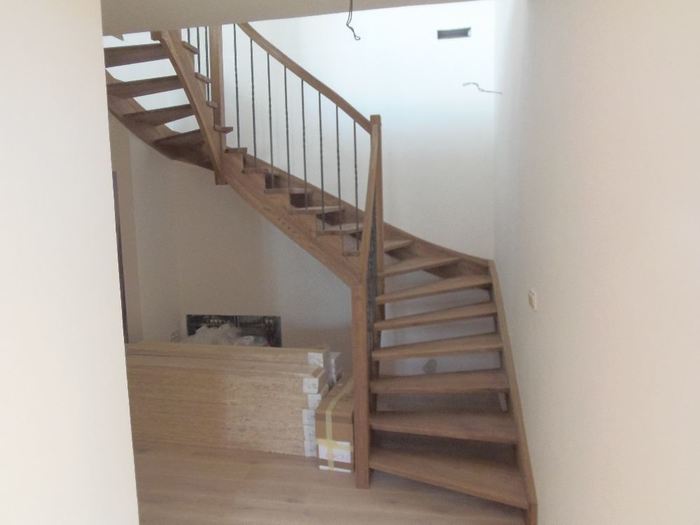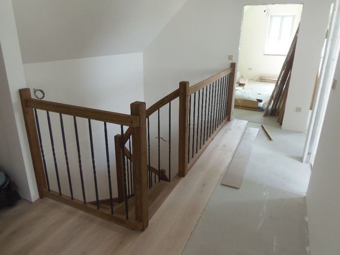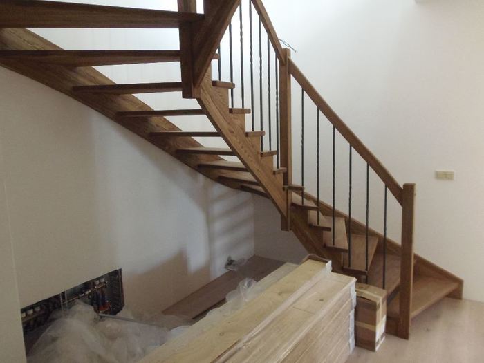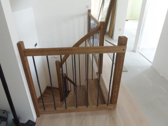 Samonosné dřevěné schodiště bez podstupňů vyrobené ve tvaru písmene „U“ Na výrobu schodiště bylo vyrobeno dřevo z dubu průběžného s povrchovou úpravou mořením do šeda a po té ještě olejováním. Do zábradlí tohoto samonosného schodiště bylo použito dřevěné madlo ze stejného materiálu jako je vyrobeno schodiště v kombinaci s ocelovými tyčkami.