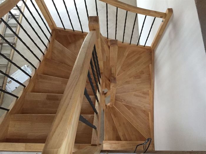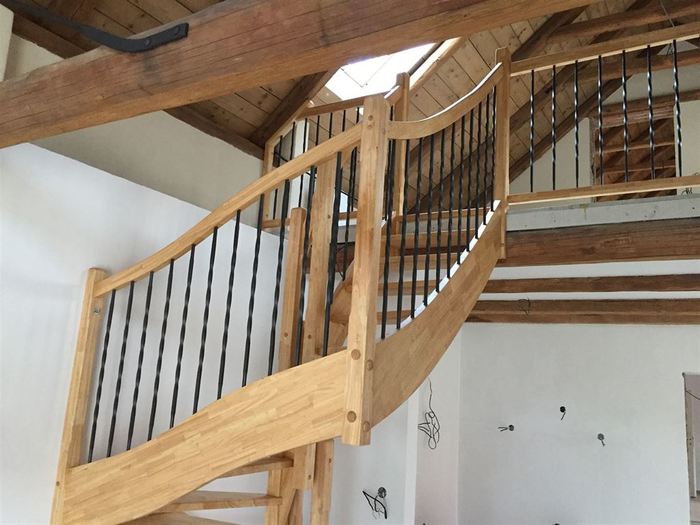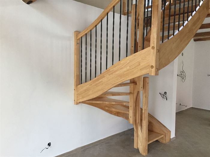 Dřevěné samonosné schodiště z dřeva hevey, Kutná Hora