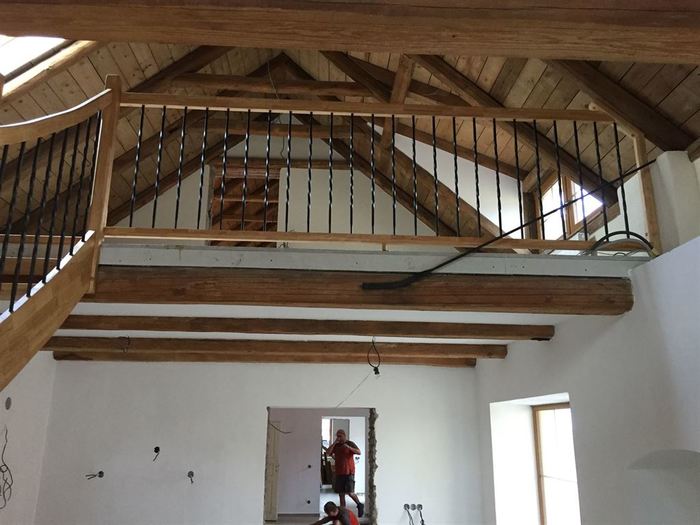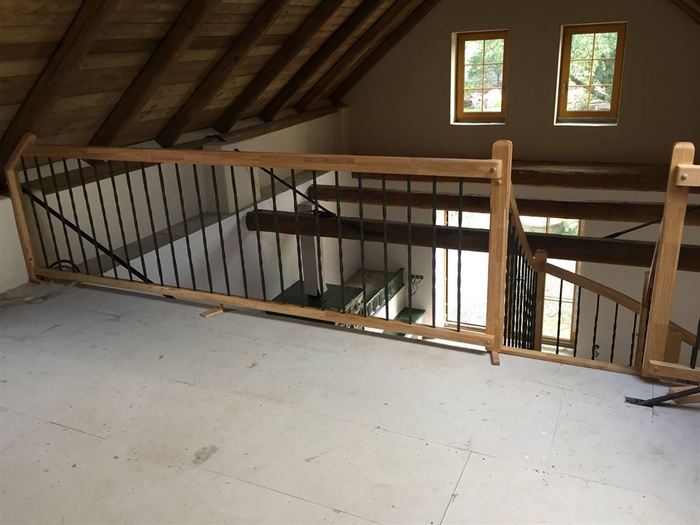 Dřevěné samonosné schodiště jsme vyrobili z exotického tropického dřeva hevey. Schodiště je ve tvaru „U“ a je bez podstupňů. Zábradlí schodiště je kombinací dřevěných sloupků ze dřeva hevey a kovových tyček. Horní madlo zábradlí je také z masivu hevey. Všechny dřevěné části schodiště mají povrchovou úpravu olejováním, která zvýší odolnost částí schodiště a zvýrazní kresbu exotického tropického dřeva hevey. Olejováním je možno také upravit konečný odstín dřeva na schodišti.