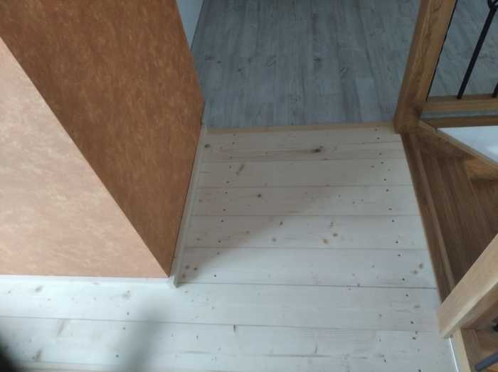 Součástí naší realizace byla také montáž smrkové podlahy na podestě nad schodištěm.