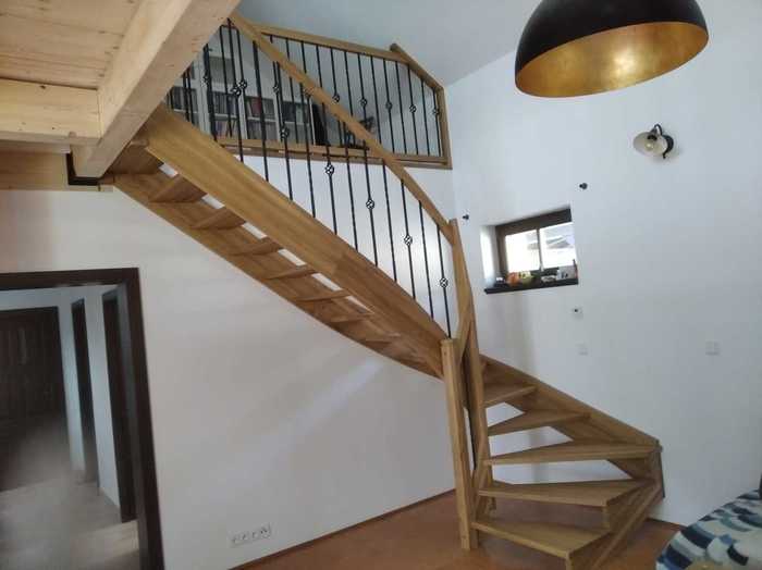 Pro rodinný dům nedaleko Prahy jsme navrhli, vyrobili a namontovali elegantní samonosné schodiště bez podstupňů ve tvaru „U“. Schodiště je vyrobeno z dubu průběžného s olejovanou povrchovou úpravou Dřevěné schodiště bez podstupňů, dodává celé konstrukci lehkost a vzdušnost. K tomu přispívá také zábradlí, které je tvořeno kombinací dřevěného madla a precizně zpracovaných kovaných tyček, které zajišťují nejenom bezpečnost na schodišti i stylový vzhled.