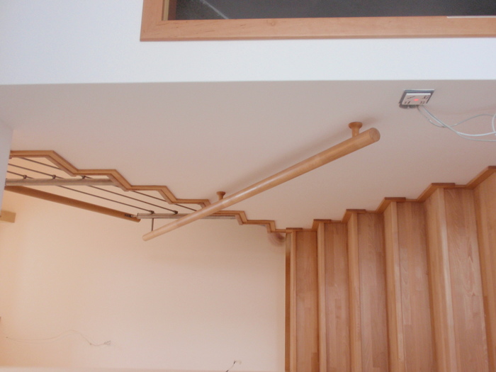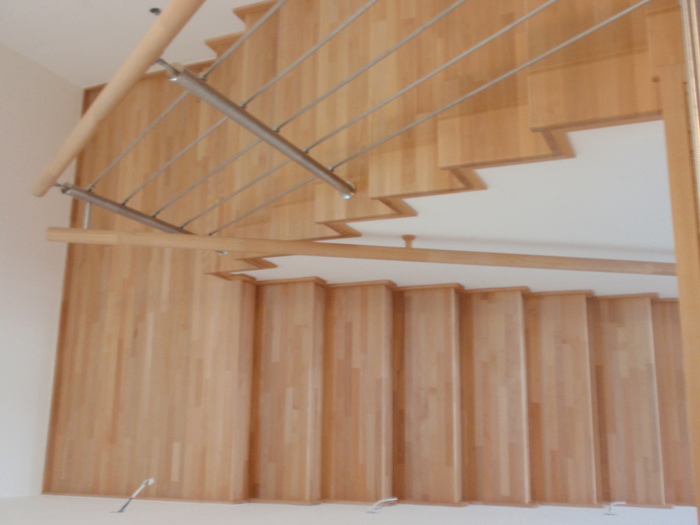 Veškeré dřevěné části schodiště, zábradlí u schodiště a galerie jsou vyrobeny z masivu, dřeva buk cink.