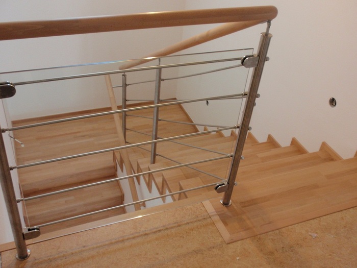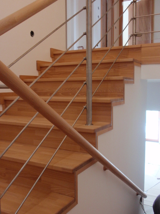 Do rodinného domu jsme vyrobili a namontovali obkladové schodiště, obložení betonového schodiště ve tvaru písmene „U“ s podestou a galerií.U jednotlivých schodů tohoto dřevěného schodiště jsme vyrobili samozřejmě nášlapy a k nim i podstupně a také obložení stěn okolo schodiště. Zabradlí schodiště je kombinací masivu, dřeva a vodorovného nerezu. V případě galerie je zábradlí kombinací dřeva a skleněné výplně.
