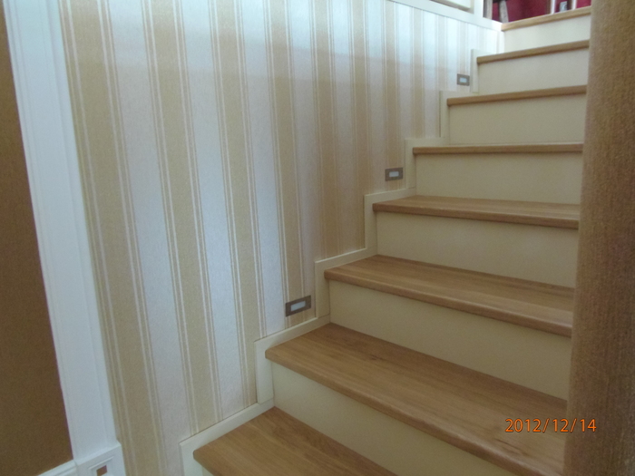 Díky bílému nástřiku podstupňů schodů a obložení stěn a zábradlí působí obkladové schodiště originálním dojmem a dodává interiéru bytu originální atmosféru a dokresluje vzhled interiéru domu, stává se jeho dominantou.