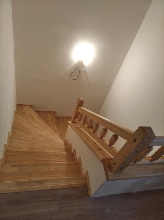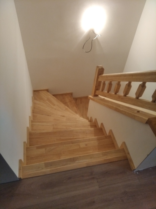 Schodiště je vyrobeno z masivu hevey s povrchovou úpravou olejováním.