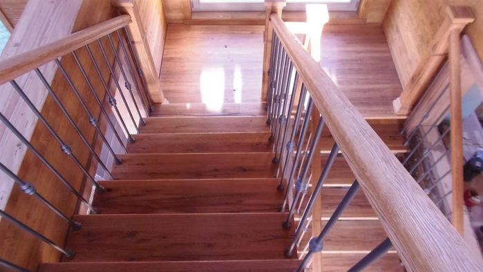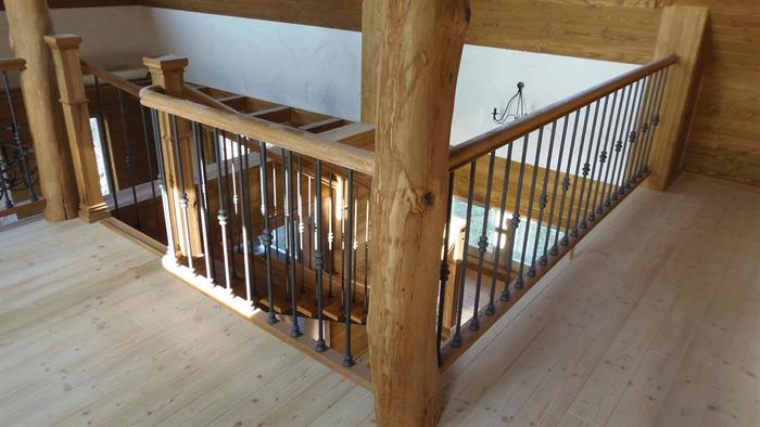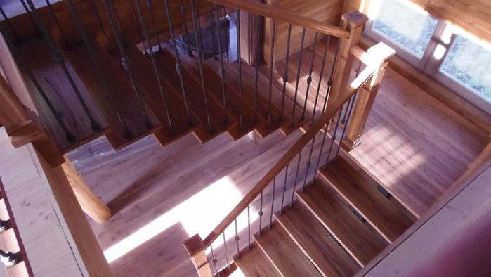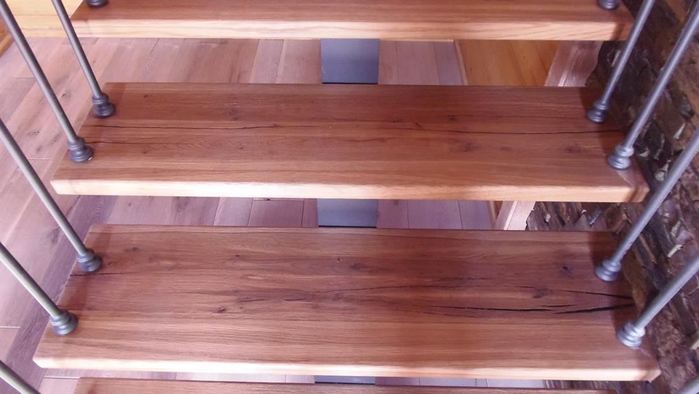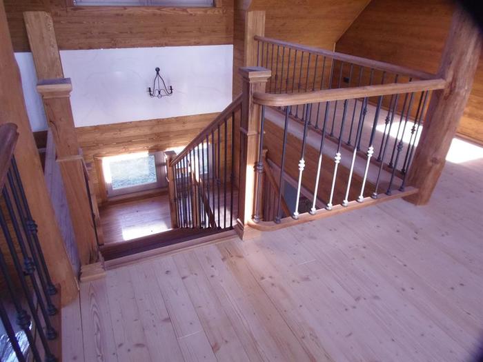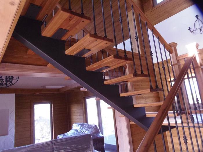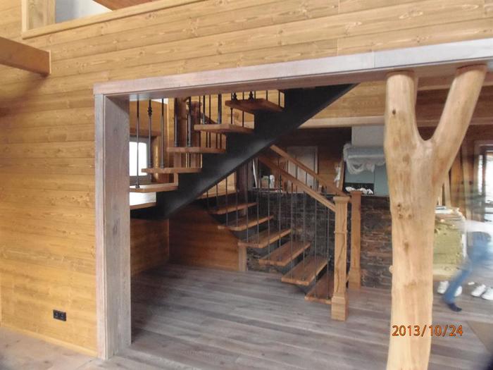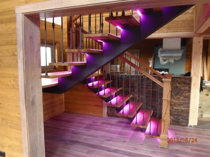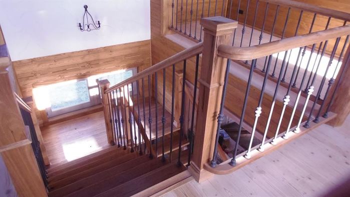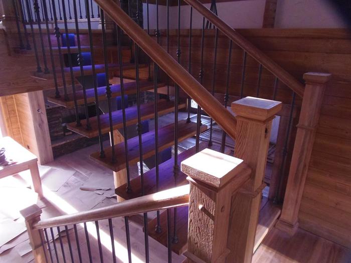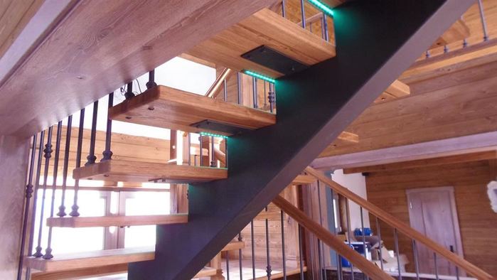 Samonosné dubové schody do srubu, drásené s osvětlením