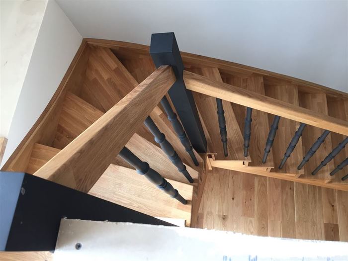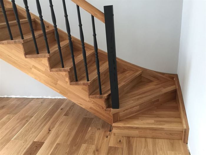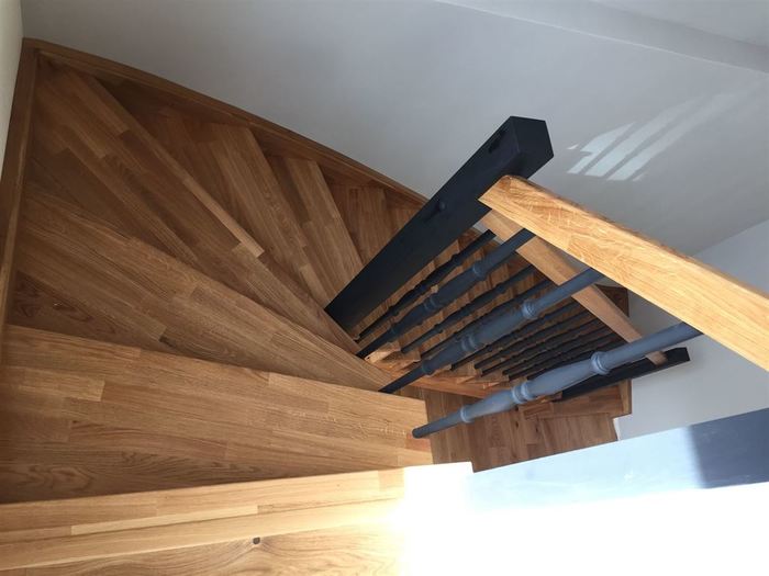 Pro zákazníka nedaleko od Prahy jsme vyrobili a namontovali samonosné interiérové schodiště z masivu dubu cinku. Schodiště má podstupně, sedlové bočnice a zábradlí s tyčkami a sloupky také z masivu dubu cink.