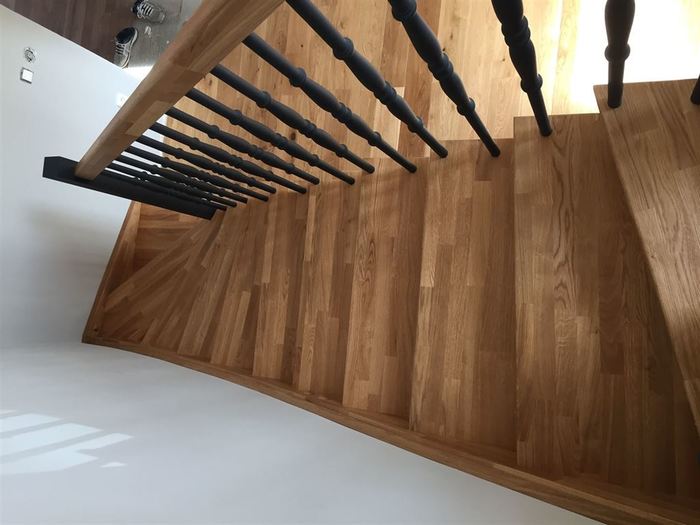Celé toto samonosné schodiště jsme vyrobili a připravili v naší truhlářské dílně v Hartvikovicích u Třebíče a poté jsme ho dovezli k zákazníkovi nedaleko Prahy. Tam jsme celé schodiště smontovali a předali zákazníkovi.