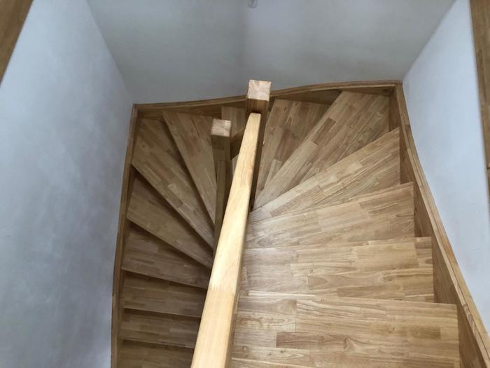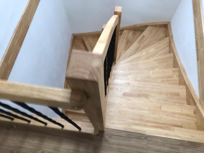 Bezpečnostní dvířka ve spodní části schodiště, stejně jako zábradlí a galerie a obložení stropu jsou také ze dřeva hevey. Zábradlí a galerie u schodiště jsou kombinací dřeva hevey ze kterého jsou vyrobeny sloupky a madla a kovaného železa ze kterého jsou vyrobeny tyčky /šprušle/.