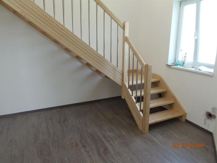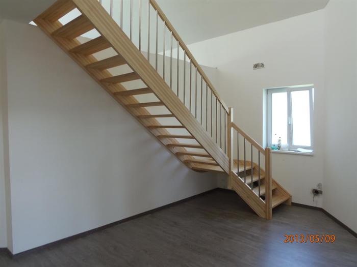 Schody samonosné s dřevěným půlkulatým madlem 72