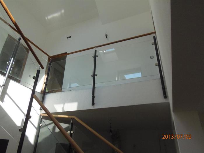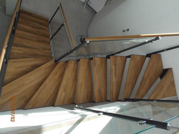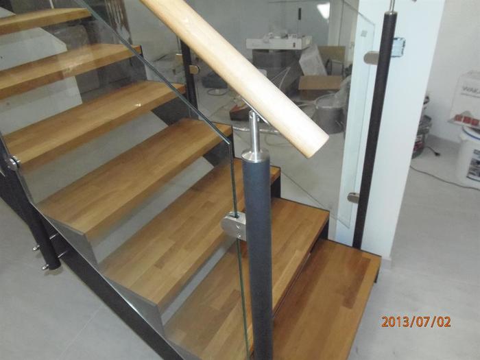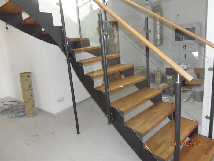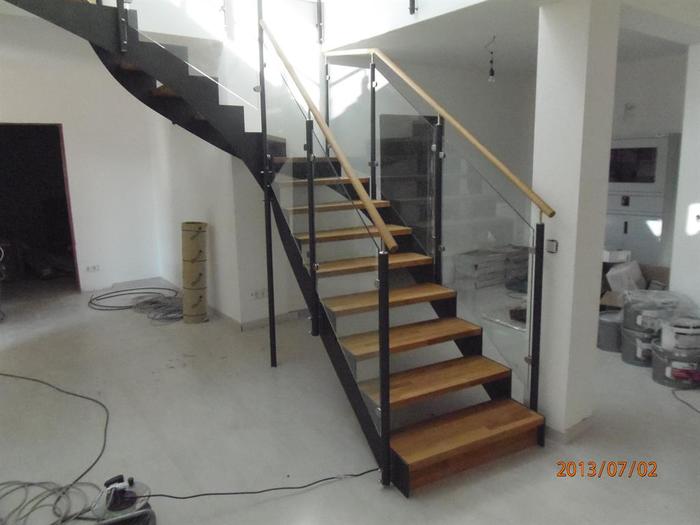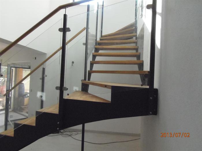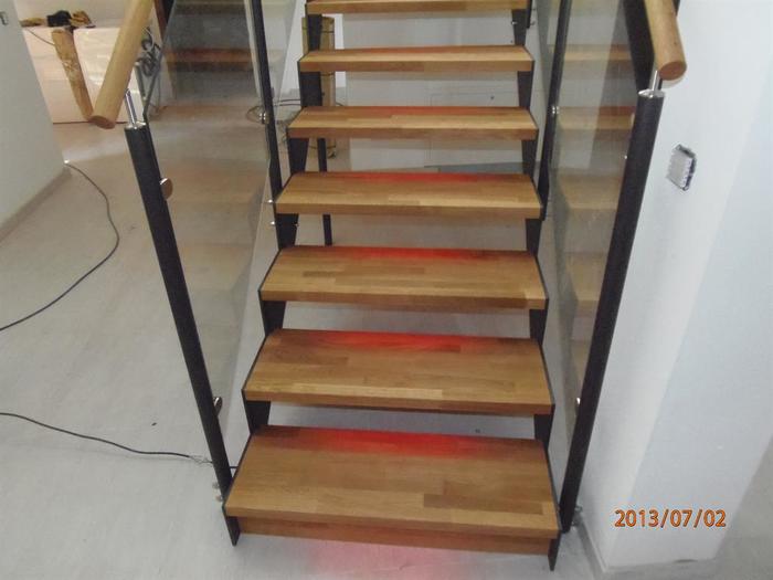 Schody samonosné s železnou bočnicí, sklem, LED osvětlením a nerez sloupky 69