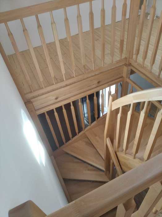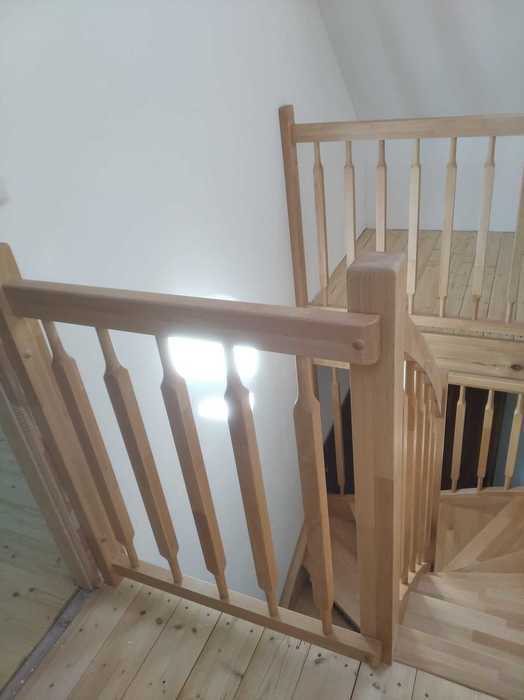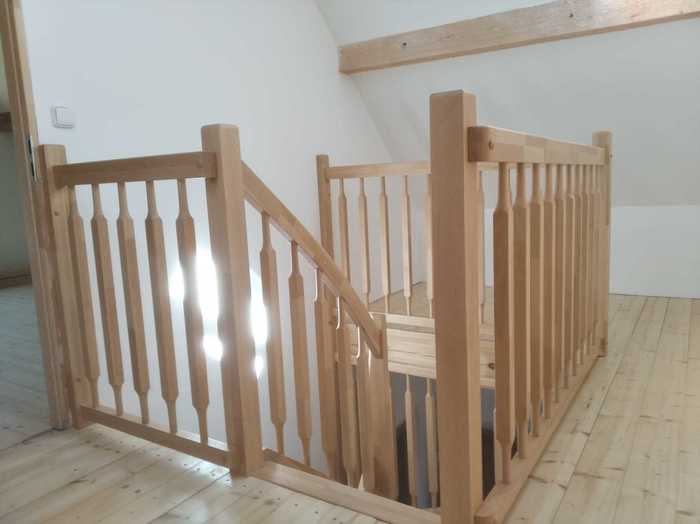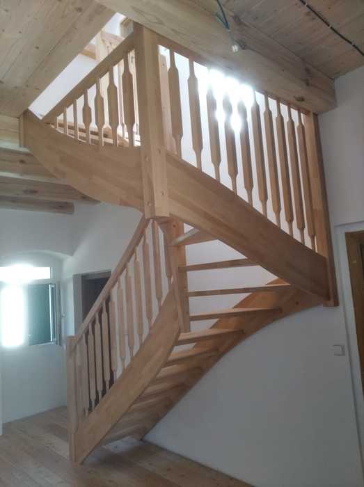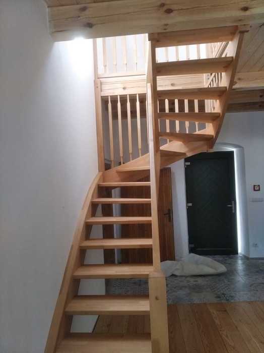V této realizace dřevěného schodiště jsme navrhli, vyrobili a následně namontovali samonosné dřevěné schodiště do tvaru „U“ pro zákazníka v rodinném domě v okrese Třebíč. Schodiště je vyrobeno z kvalitního dřeva buku cink, který je známé svou odolností a zajímavým vzhledem a designem dřeva. Povrchová úprava schodiště olejováním zvýrazní kresbu a přirozený vzhled dřeva a zároveň zajišťuje jeho dlouhou životnost.